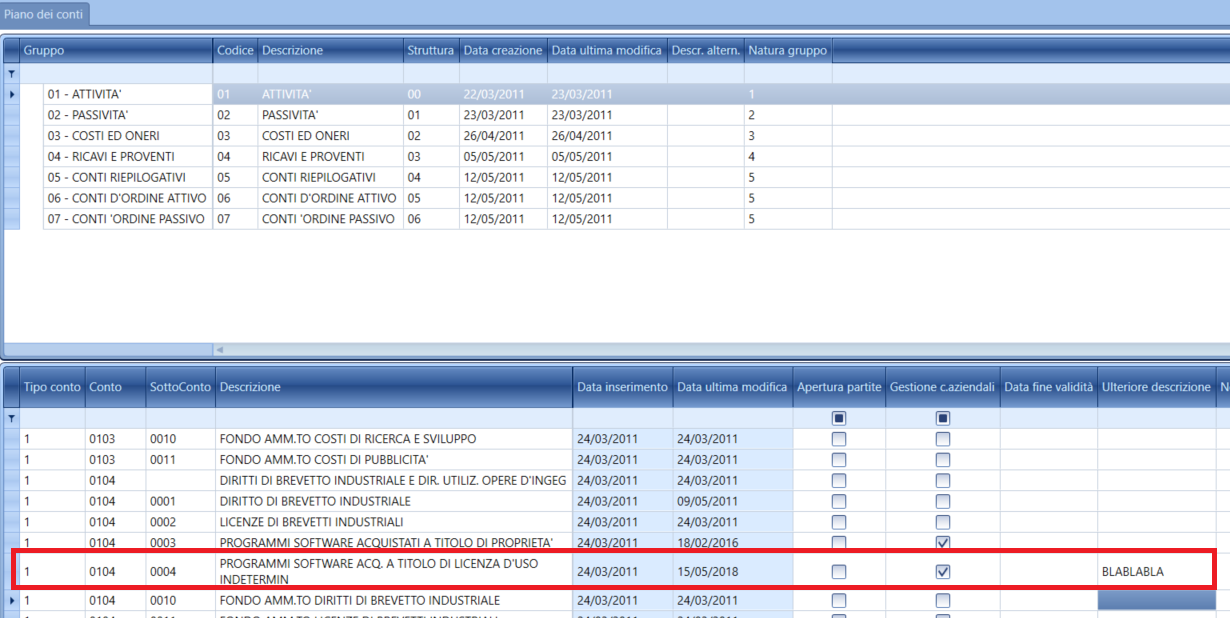 Alternatively, it is possible to exclude certain types of account registries so that the details of each individual detail account related to the type for which the flag is activated are not displayed.