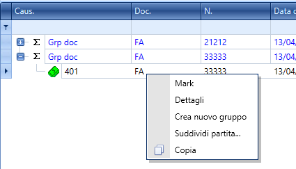 La gestión de Agrupaciones de partidas permite crear, en la fase de apertura de partidas o en un segundo momento, grupos de partidas (el grupo es una especie de contenedor que incluye, también visualmente, las partidas de detalle).